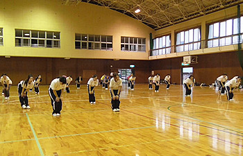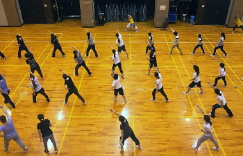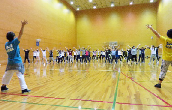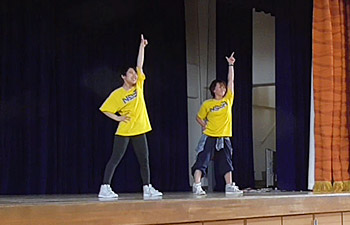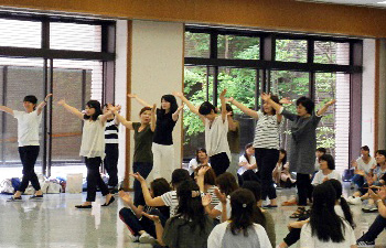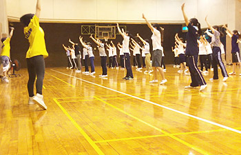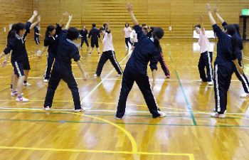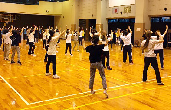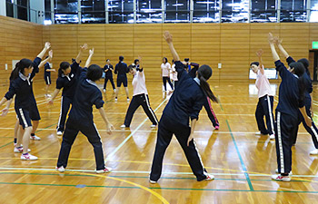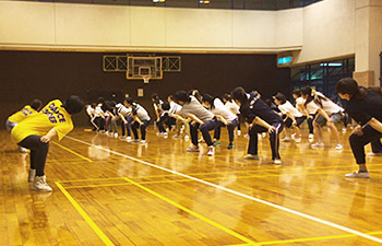 グループに分かれて見せ合いをします。見せ合い、応援合戦に取り組むことで、盛り上げ方も体験していただきます。