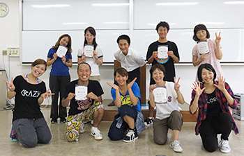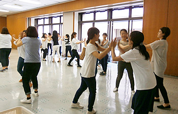 保育士として現場に立つ学生に運動会等で活躍できるものを、一つでも多く学んでほしいという思いで依頼させていただきました。実際の講習会では、リズムの取り方やステップだけではなく、講師の先生より「私の今までの経験のすべてを伝授したい!!」という熱い思いや、身体を動かして得る楽しさから出る本当の笑顔の大切さを実践を持って伝えていただきました。少し恥ずかしがりやで内向的な学生が多いと感じられ、楽しさを表現し仲間へ波動していくことを重点的に進めていただき、最初は冴えない表情だった学生も次第に自然と笑顔のなっていく様子が、よくわかりました。失敗してもよい、間違いを教えてくれる方に感謝する、心からの笑顔でこどもと接する、ダンスというジャンルだけでなくダンスを通してこれからの大切なことを多く教えていただきました。