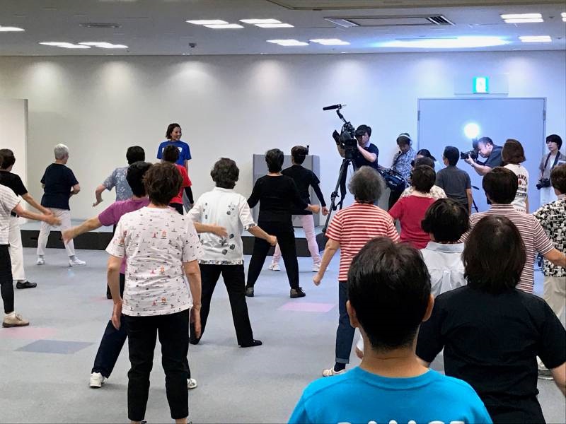 大阪市のATCエイジレスセンターにて実施の「はじめての健康ダンス教室」の全8回が終了しました。 お知らせ 公開日:2017年9月14日 この日は、NHKのクローズアップ現代や朝日新聞の取材もあり、最初はダンス教室に参加されている皆さんも少し緊張した面持ちでしたが、最後はいつも通りハイタッチをして笑顔で終了することができました。 はじめての健康ダンス教室について