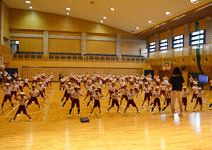 - ②隊形移動をしグループ(各グループ12名・10グループ)に分かれ規定振付